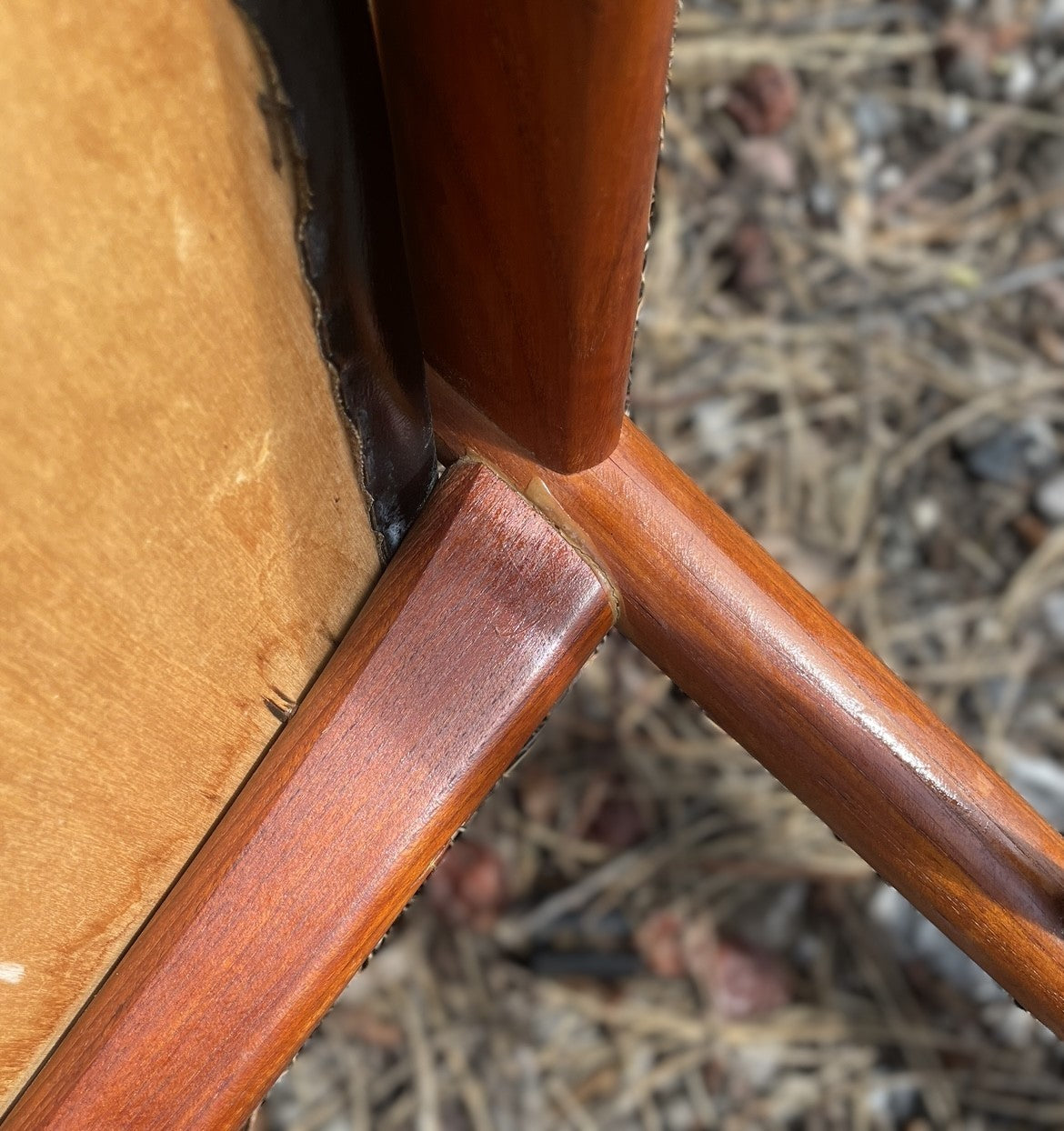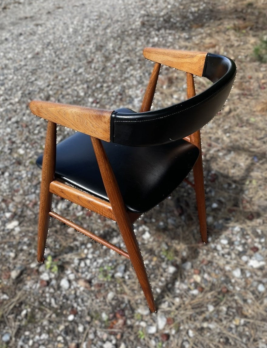 Flot teak armstol med kunstskind, tilskrevet Aksel Bender Madsen og Ejner Madsen.