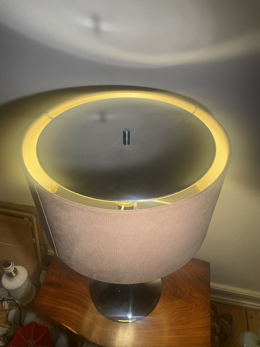 Flot bordlampe i forkromet metal og flot stof skærm - nr. 090090