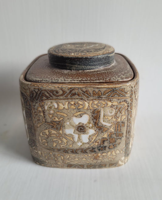 Smuk 4-kantet lågkrukke design af Nils Thorsson for Royal Copenhagen - nr. 003258