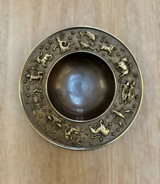 Vintage Danish bronze bowl with astrology symbols made by Nordic Malm from the 1960s