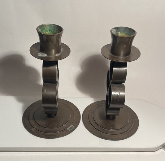 A pair of Just Andersen candlesticks made of tin, Denmark 1920