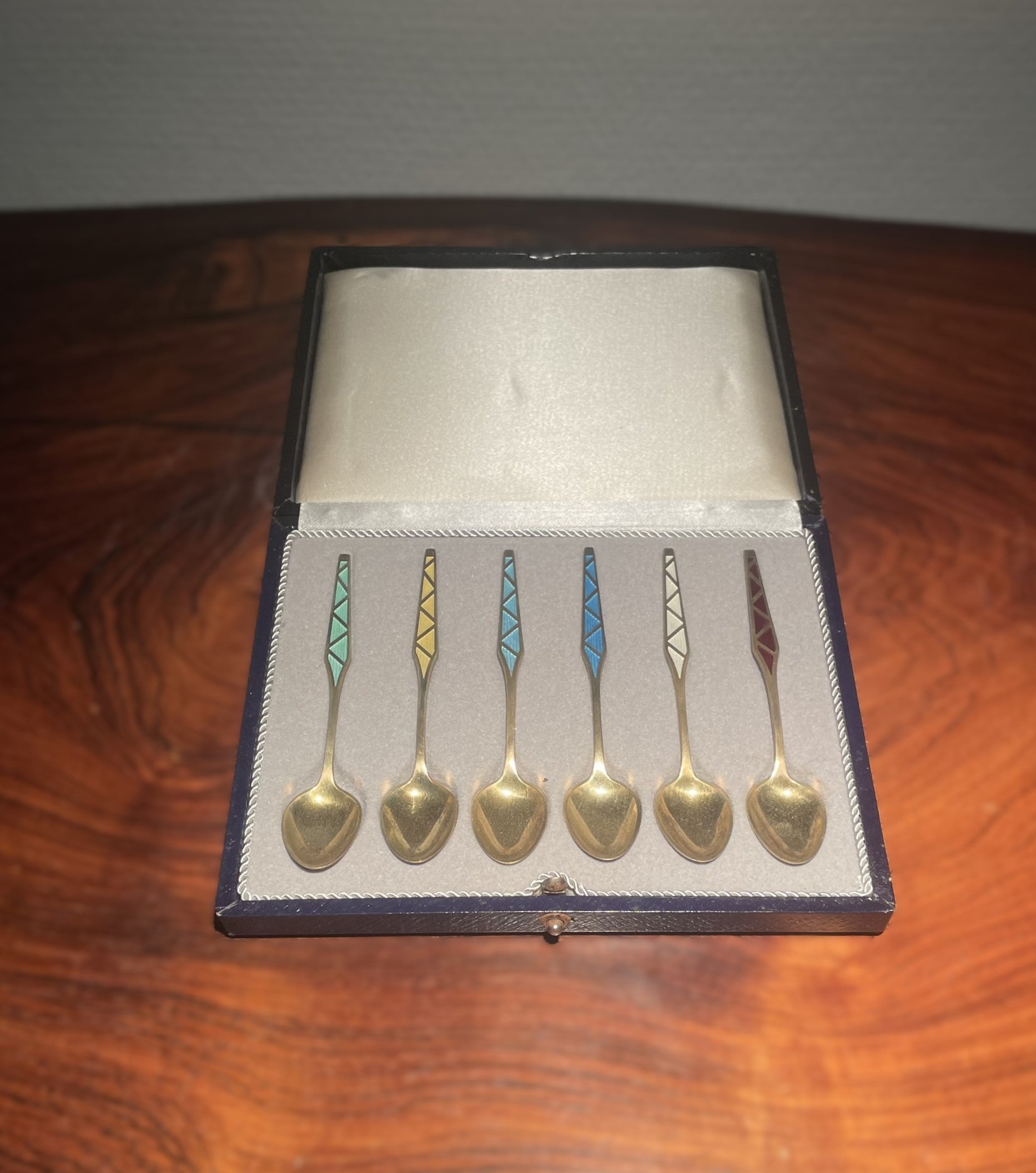 6 pieces of gold-plated mocha spoons in Sterling silver 925s and enamel.