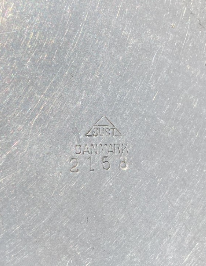 Stamped on the bottom. This piece has an attribution mark.