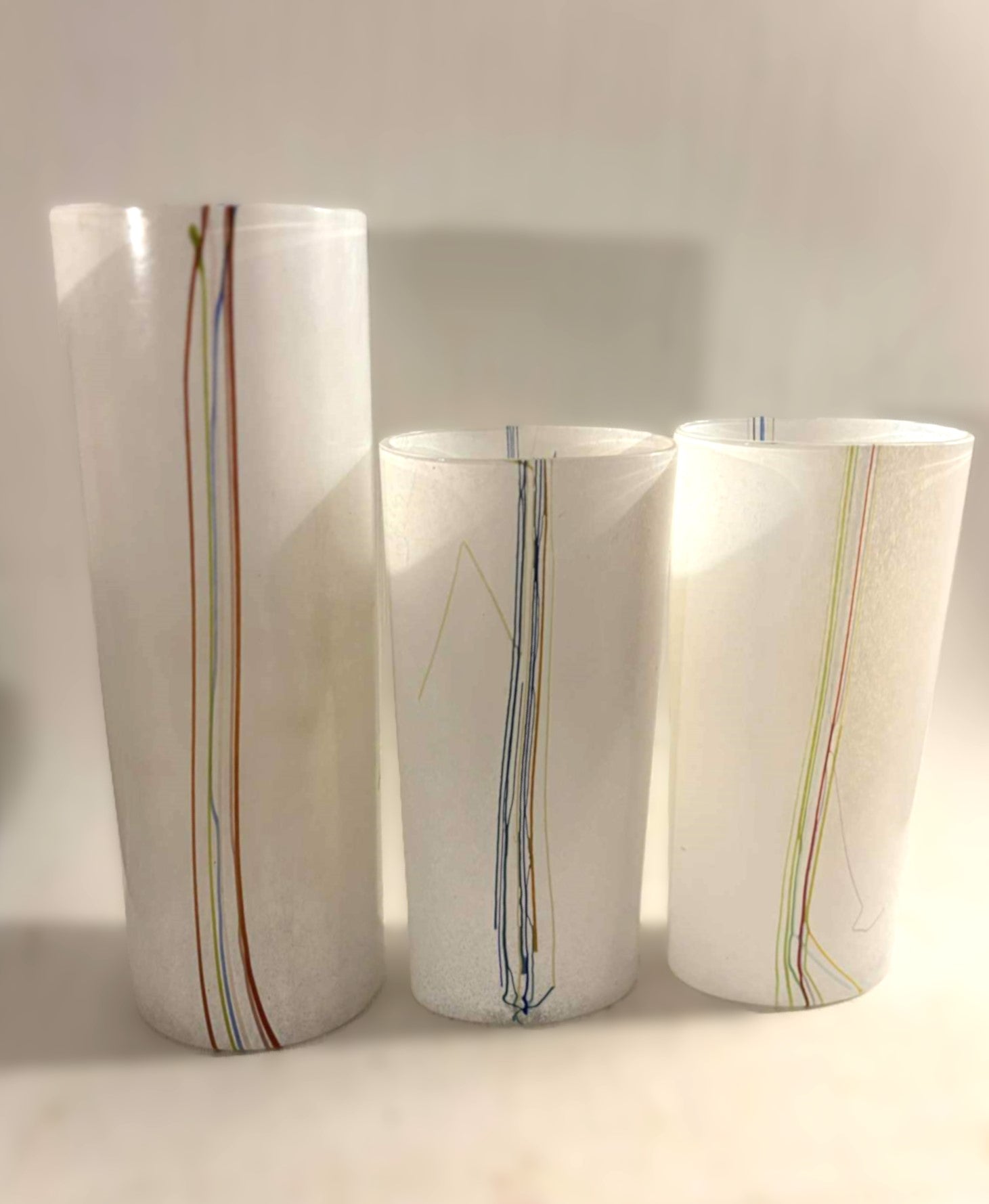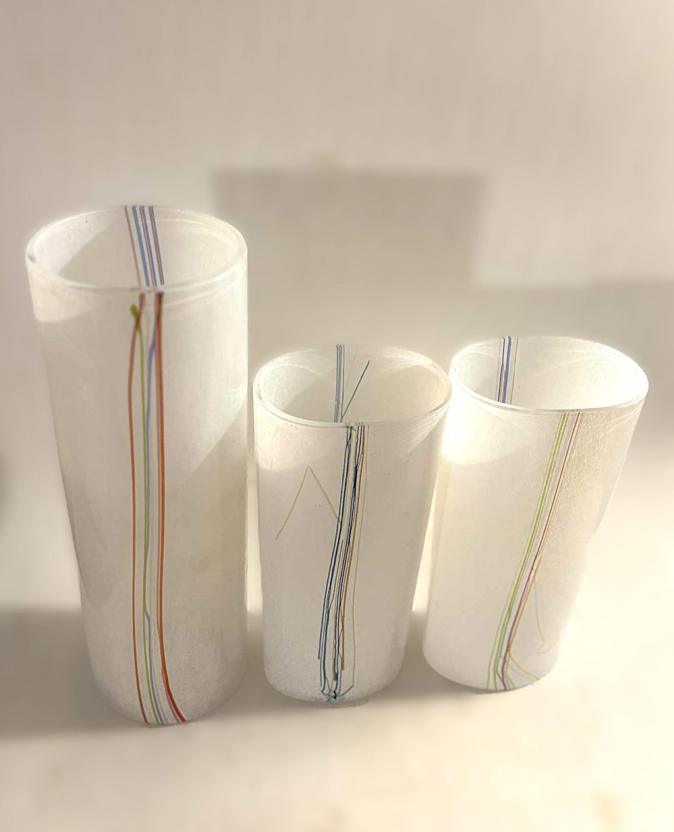 Bertil Vallien for Kosta Boda Rainbow Column Vase, Swedish Glass Art 1970s.