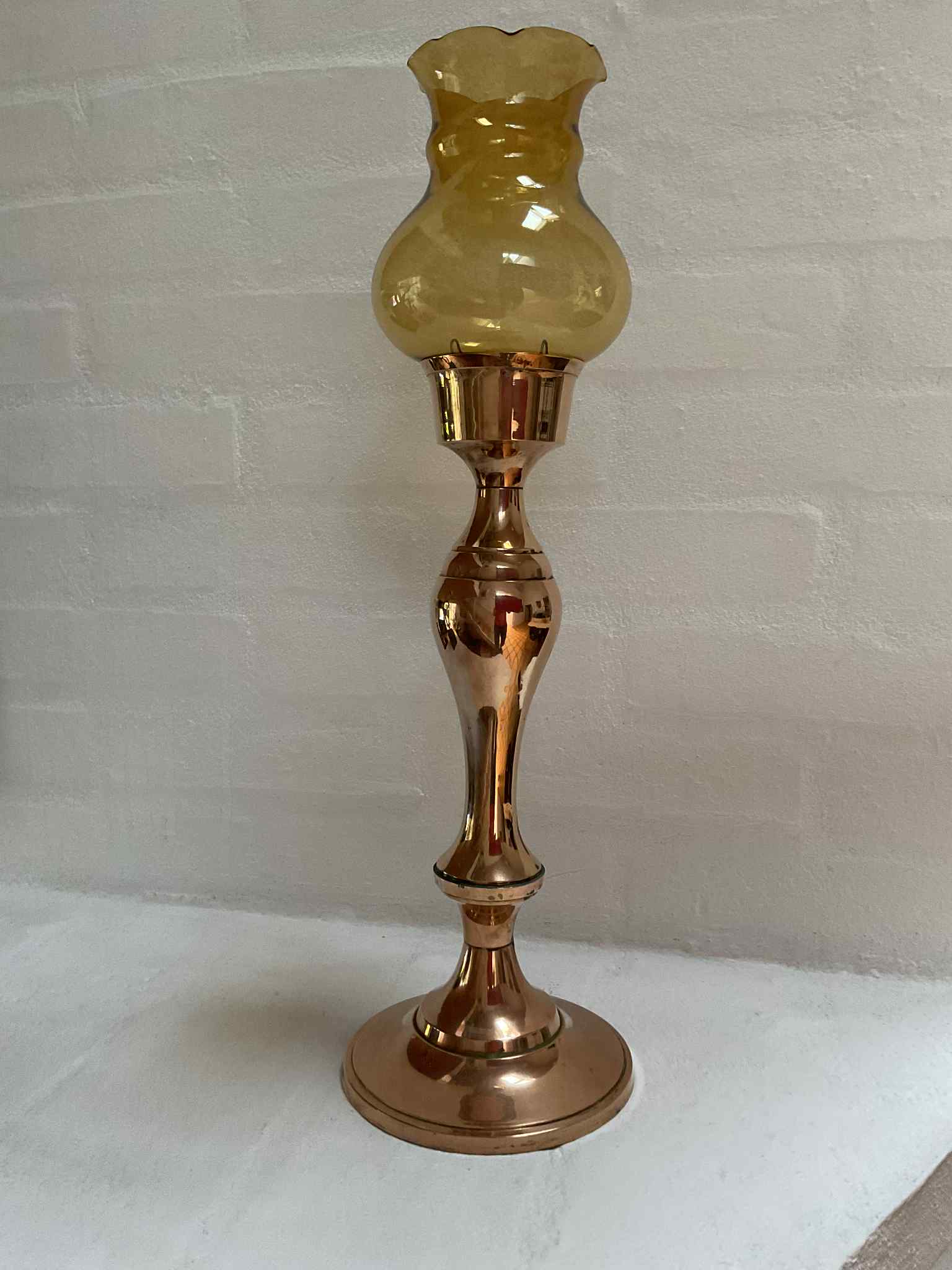 Beautiful old brass candlestick with glass shade