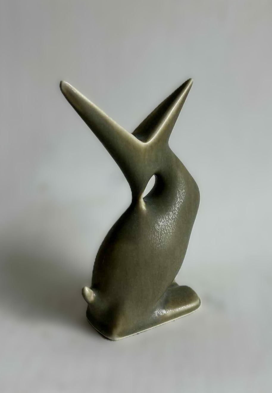 Works by Jordan for Palshu's rarity appear on the international market, making this a sought-after acquisition for serious collectors of Scandinavian ceramics, 20th-century design, and fine art. With its elegant presence and strong provenance, this stoneware bird represents not only a decorative object but also a solid design investment with long-term value.