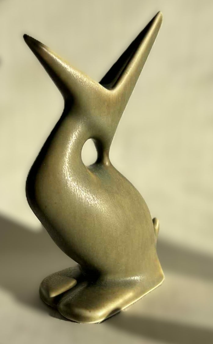 Palshus is one of the cornerstones of Danish mid-century ceramics, admired worldwide for its exceptional quality, refined forms, and innovative glazing techniques. This sculptural bird by Kjeld Jordan exemplifies the studio's mastery — the rare hare fur glaze adds depth and character, ensuring every piece is truly unique.