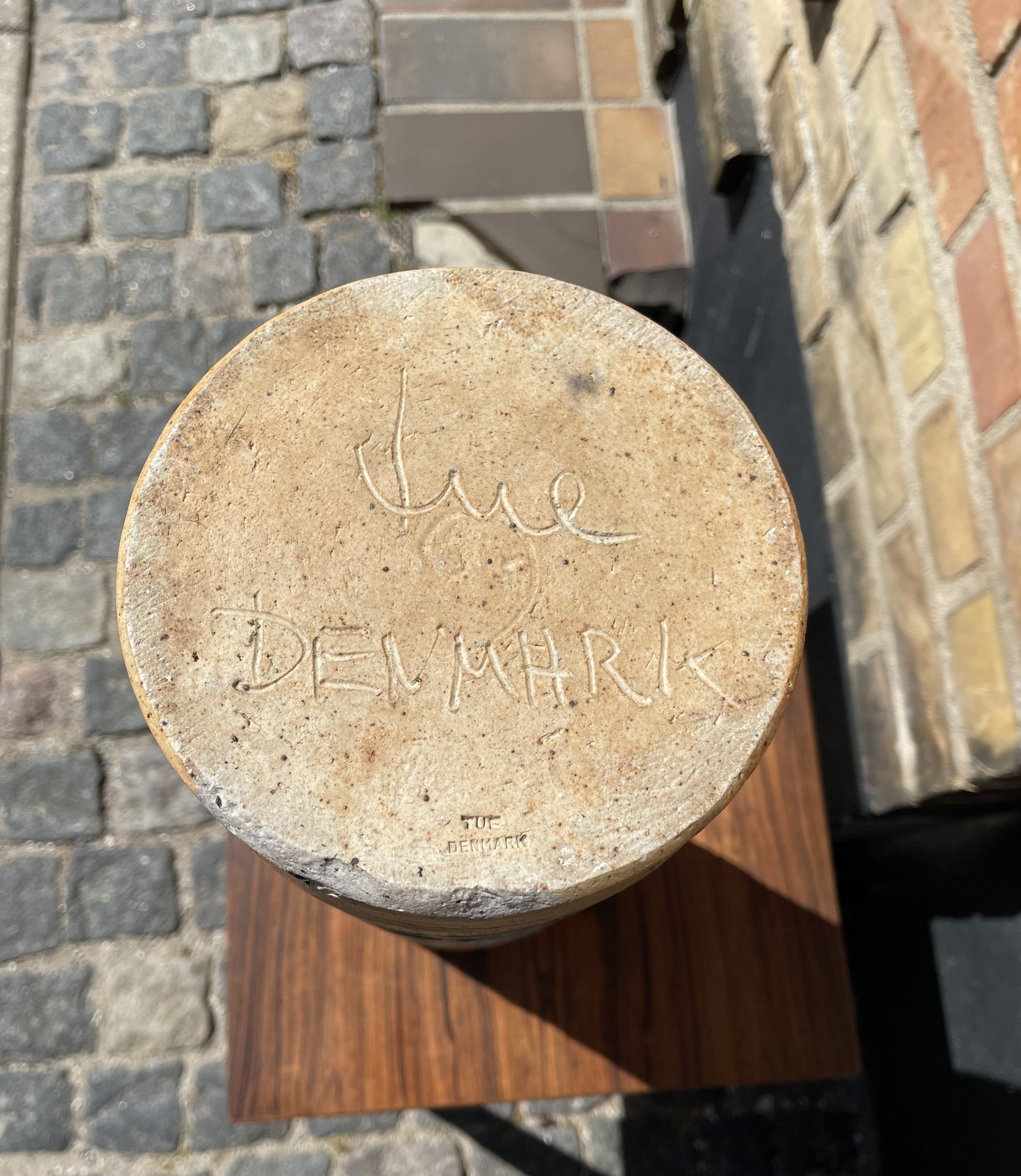 Impressive floor vase made of stoneware by the renowned Danish ceramist Tue Poulsen . The vase is characterized by a strong sculptural design and a rustic, vibrant surface - typical of Poulsen's craftsmanship and aesthetics.
