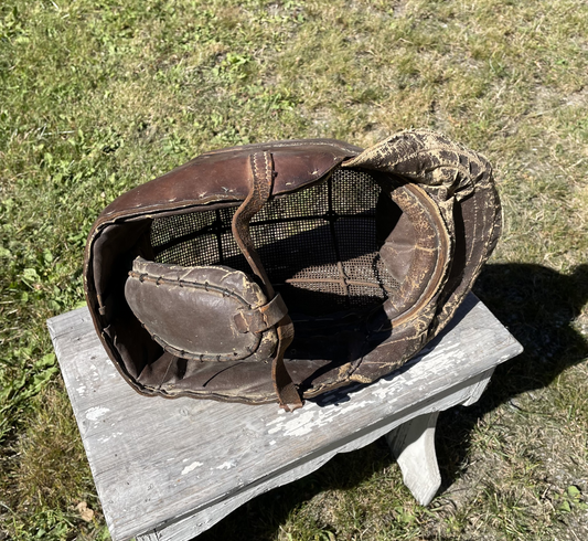 革と鉄で作られた美しい古いフランスのフェンシングヘルメット - 番号 97444604
