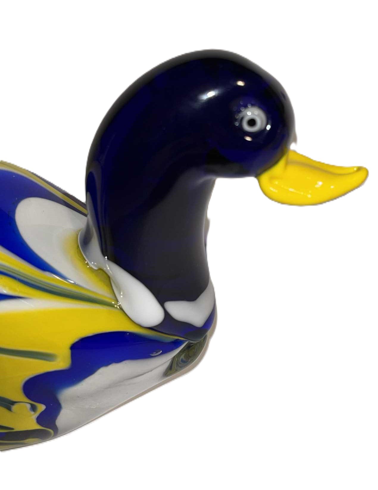 美しいガラスのアヒル - 美しい色合いの縞模様のガラスのアヒル