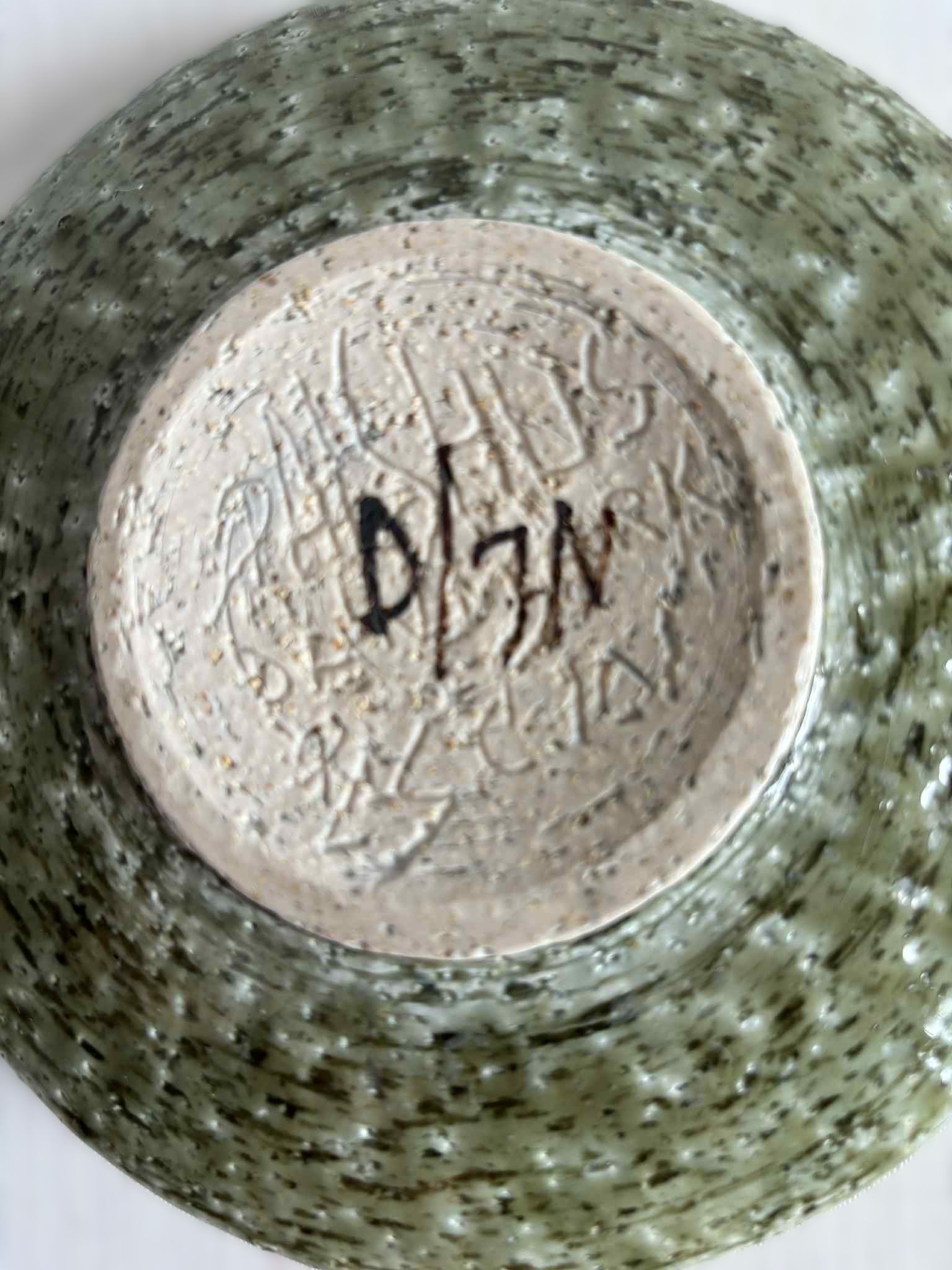The couple created and produced chamotte (danish clay) objects, often with impressed decorations (tableware, vases, and lamps). Colors were characteristic Scandinavian earthy tones: blues, browns, greens and beige.