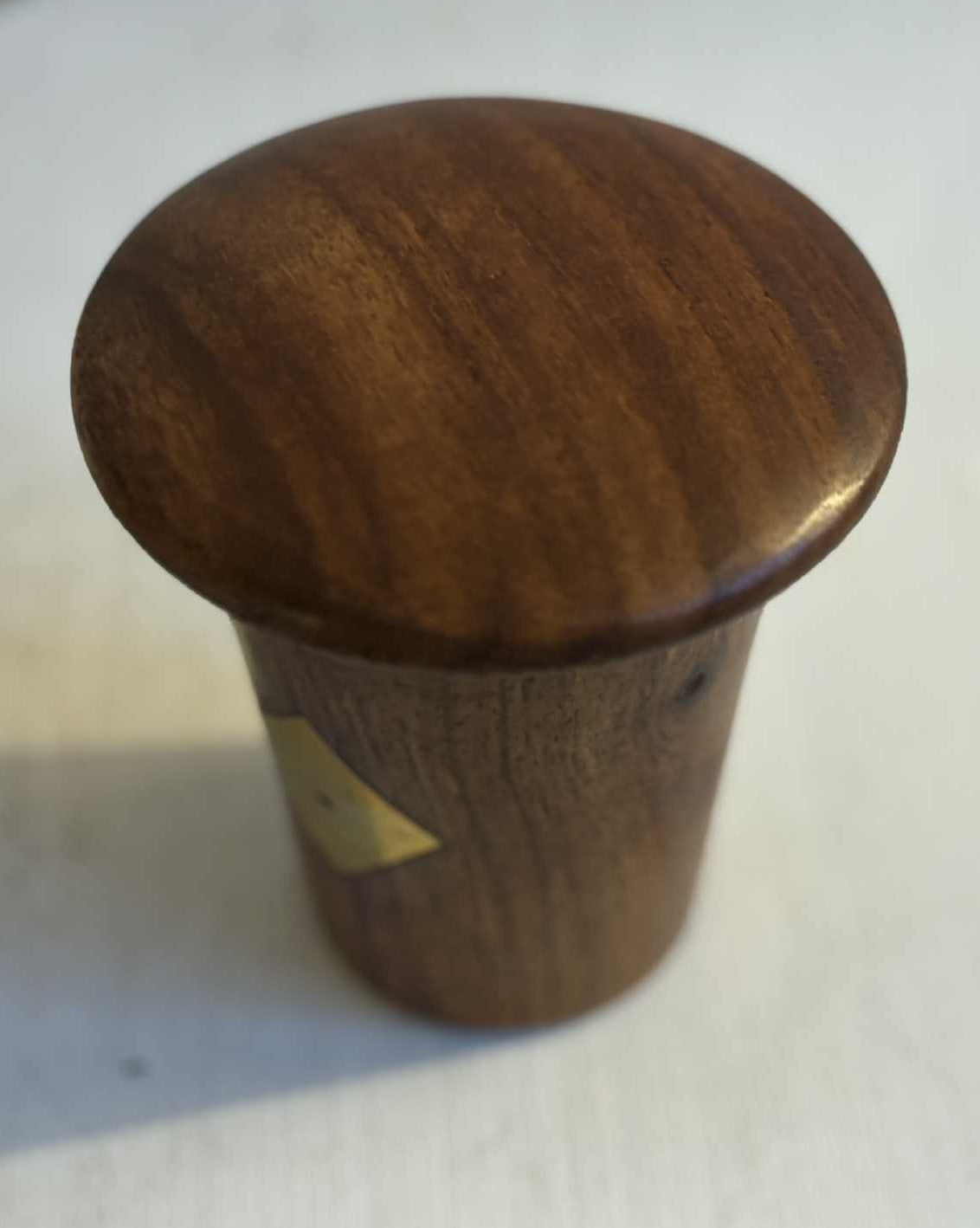 Flot retro raflebæger udført i Teaktræ og med dekorative messing 'terninger'som udsmykning.- nr. 1021478777