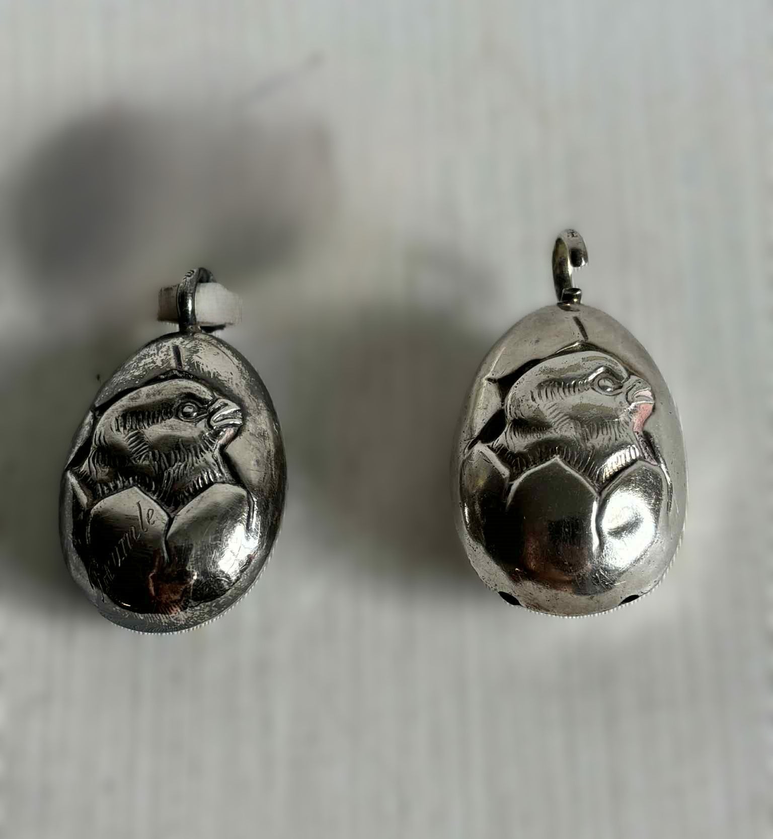 To fine vintage babyrangler i sølvplet – en særlig gave med historie, Danmark 1965