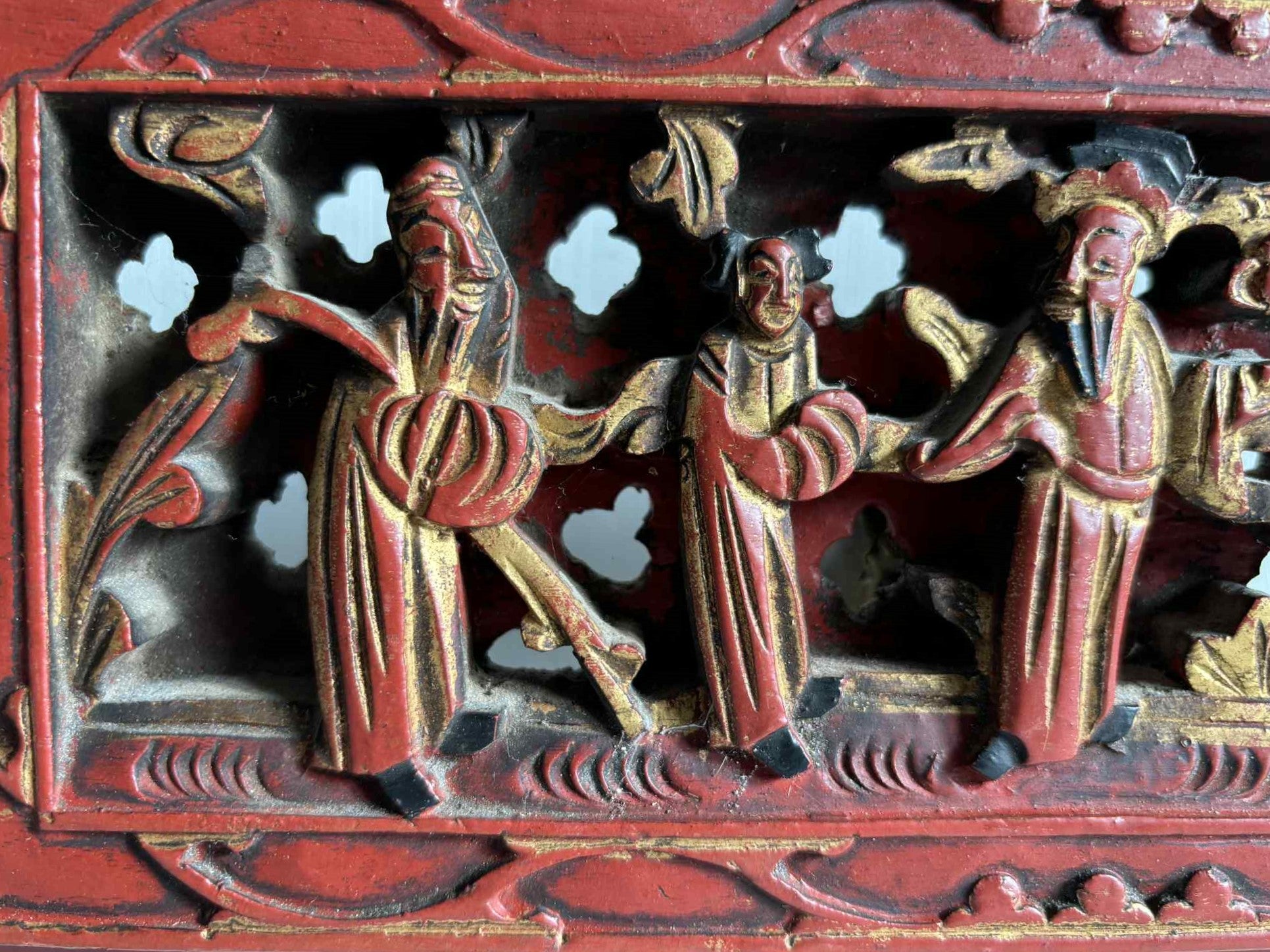 To kinesiske forgyldte træreliefer, udskåret med fine dekorationer - nr. 541554004