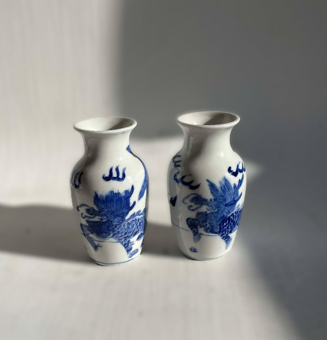 Two Oriental blue and white flowered ceramic Silveriski vase