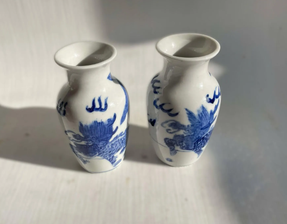 Two Oriental blue and white flowered ceramic Silveriski vase..