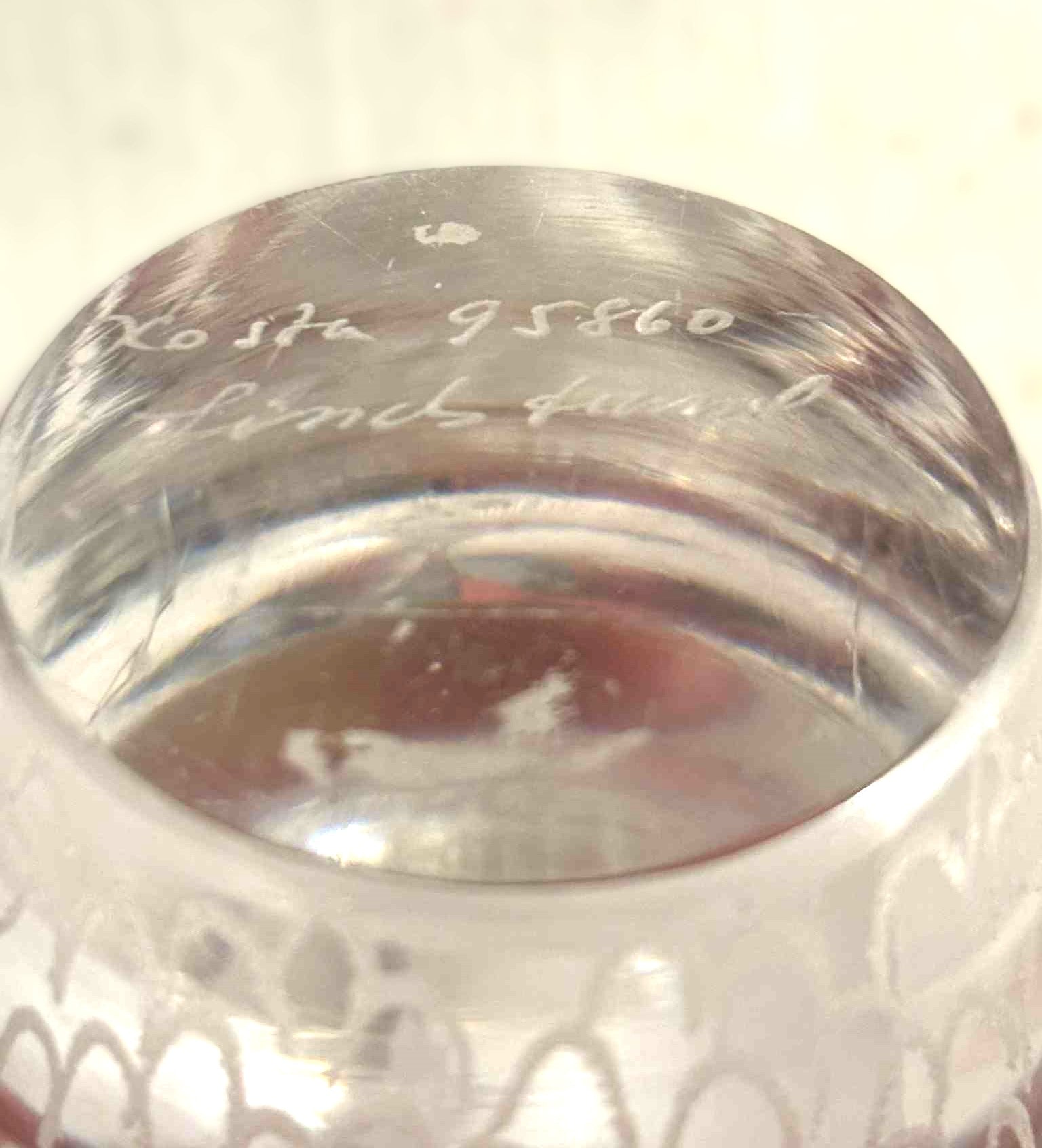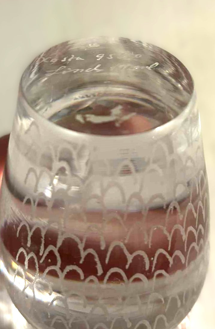 Vicke Lindstrand (1904–1983) for Kosta Boda ,Graveret Glas ugle, signeret 1950'erne/60'erne.