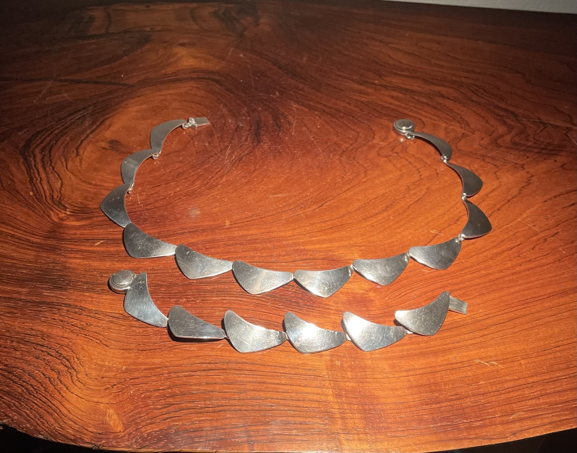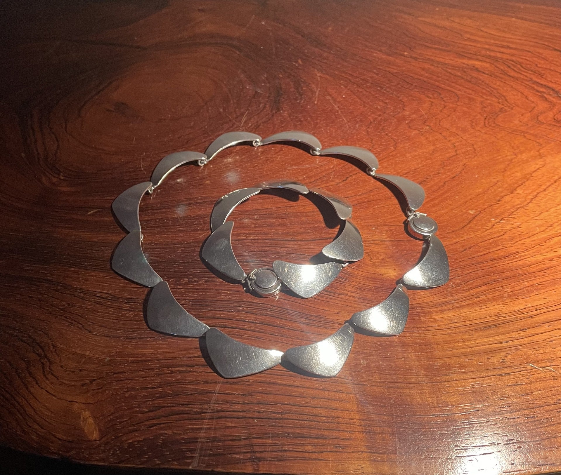 N.E. From sølv halskæde og sølv armbånd, Danmark 1950-60erne.